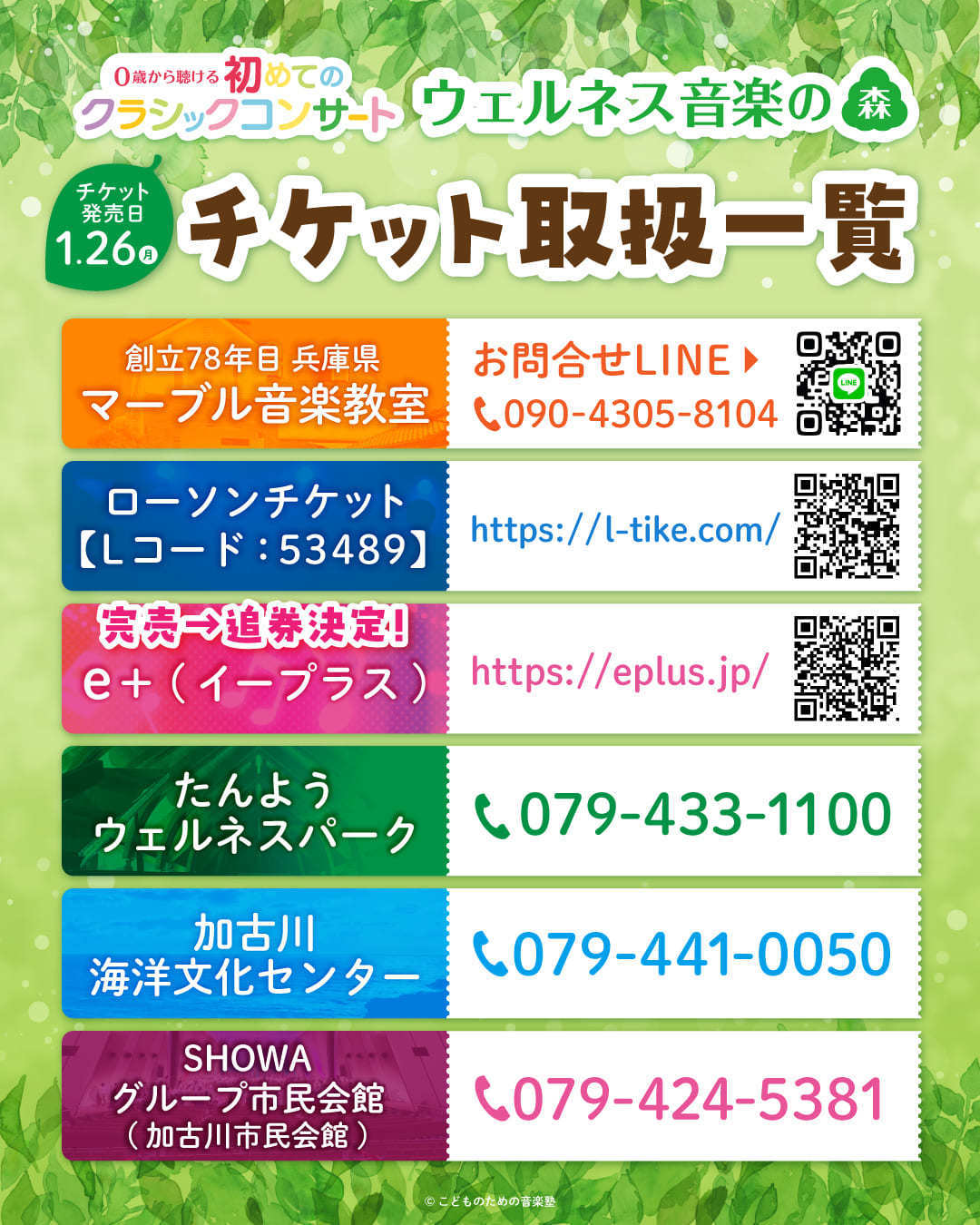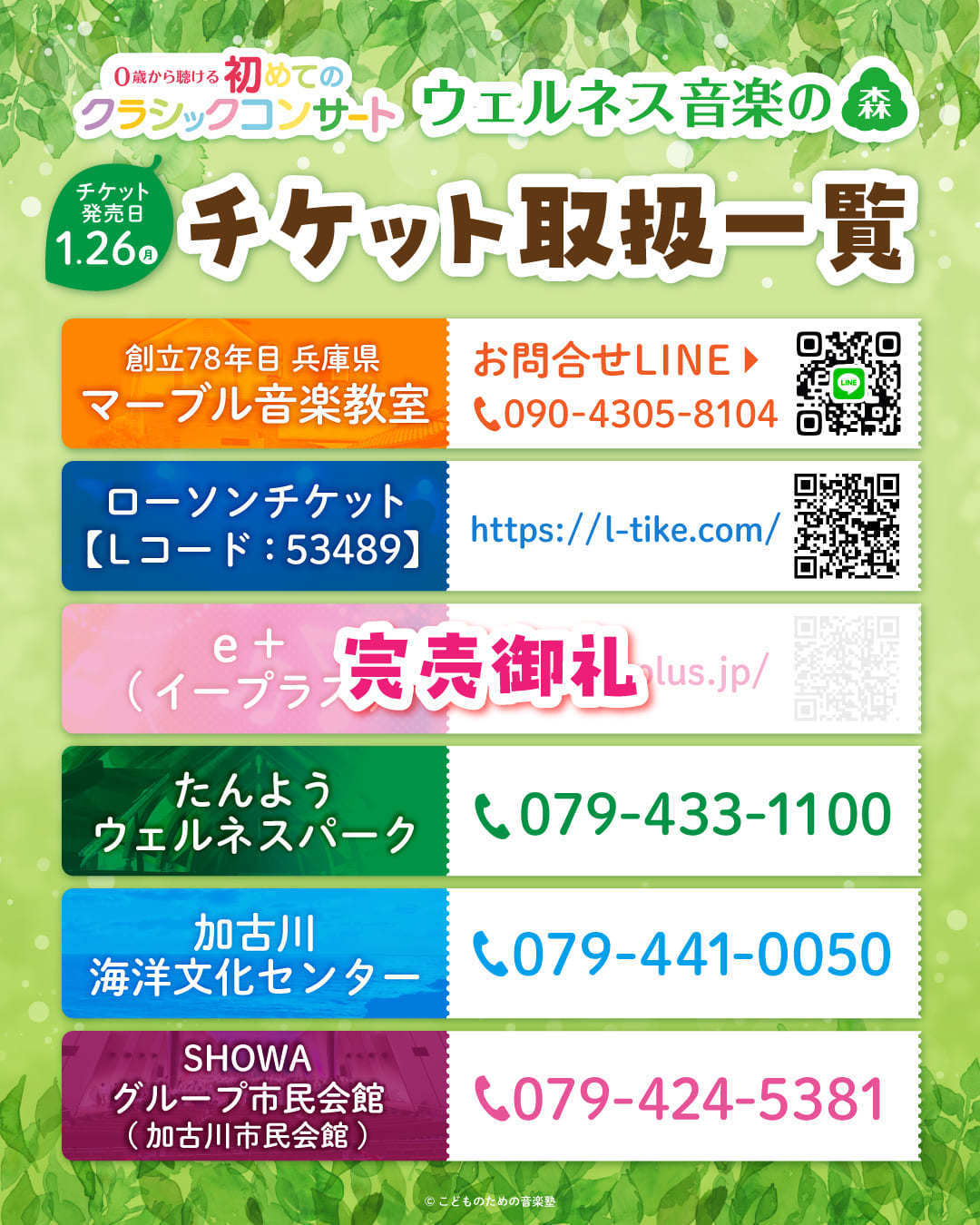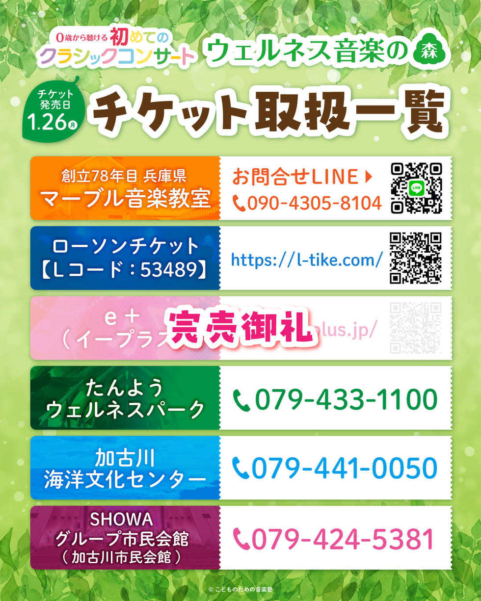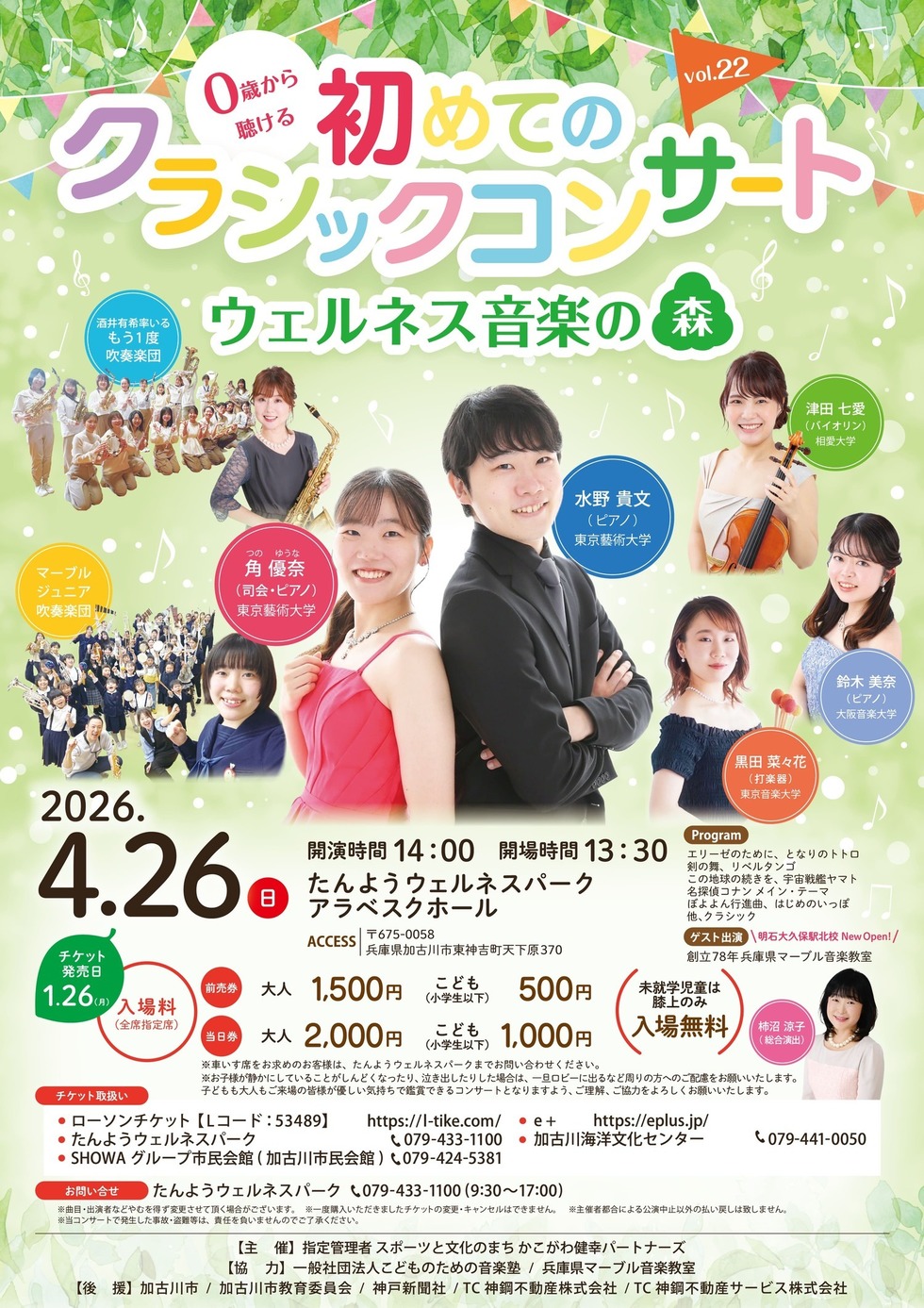 2026年4月26日(日)兵庫県加古川市たんようウェルネスパーク内アラベスクホールにて、〜0歳から聴ける初めてのクラシックコンサートvol.22〜『ウェルネス音楽の森』開催♪