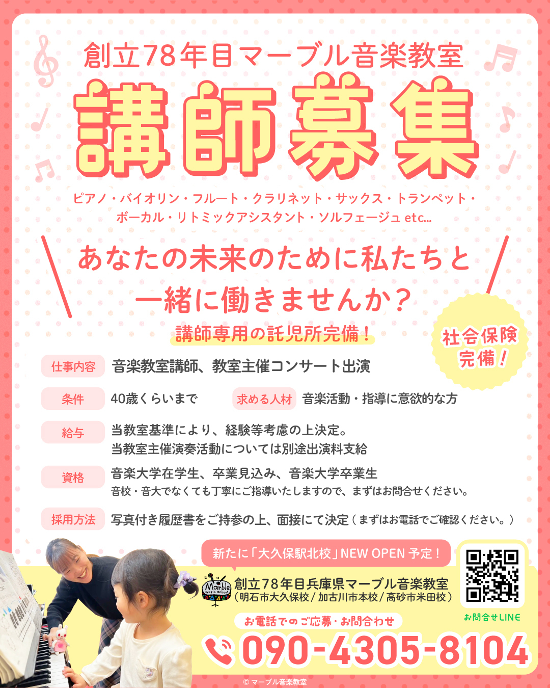 『演奏と指導』2つを両立できる!マーブル音楽教室♪