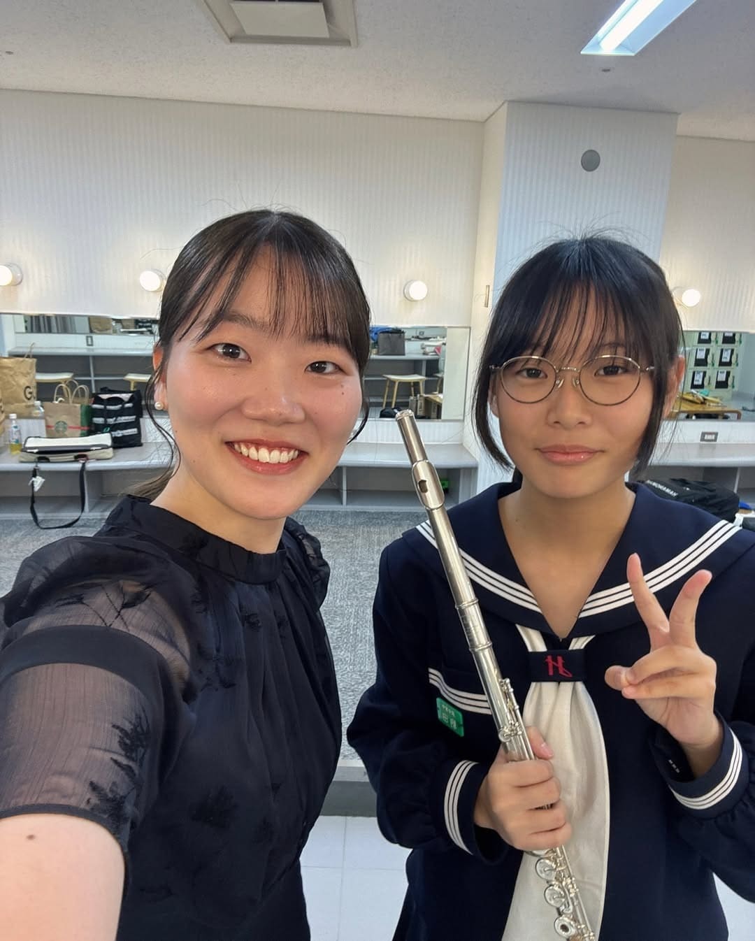 管楽器は有希先生、打楽器は菜々花先生と優奈先生、フルートは心優先生と美桜先生、オーボエ奏子先生、クラリネットの寧々先生、コントラバスの吉彦先生…コンサートに向けて一致団結がんばります!!