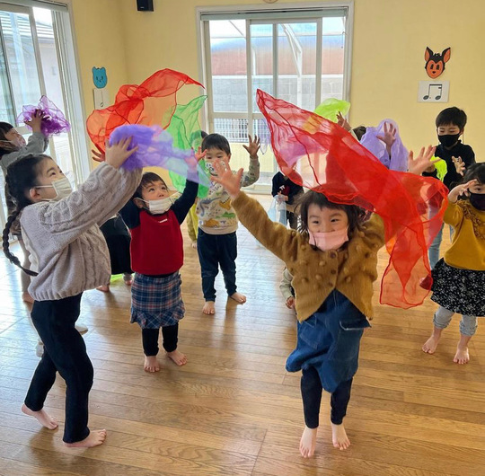 ボールやスカーフ、音符カードに大譜譜、ピアノに合わせて思いっきり音楽しましょ‼︎