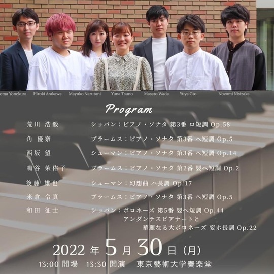 優奈先生はピアノソロとヴィオラ、声楽の伴奏で出演です。
