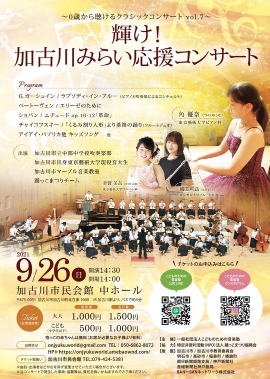 マーブル音楽教室専属講師の優奈(ゆうな)先生が、母校加古川市立中部中学校吹奏楽定期演奏会で伴奏で出演します