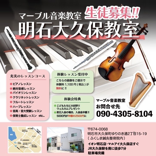 マーブル音楽教室大久保教室も明姫幹線沿いで明石イオン近くでとっても便利です。