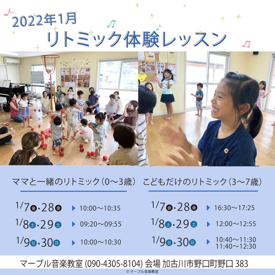 兵庫県加古川市高砂市に本校をもつ絶対音感を育むピアノ、リトミック、親子リトミックレッスンを提供しております幼児専門のマーブル音楽教室です。