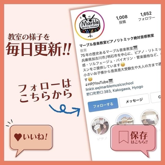◇投稿の紙ヒコーキマークから自分のストーリーに@marblemusicschool をつけてどんどん紹介してください!!