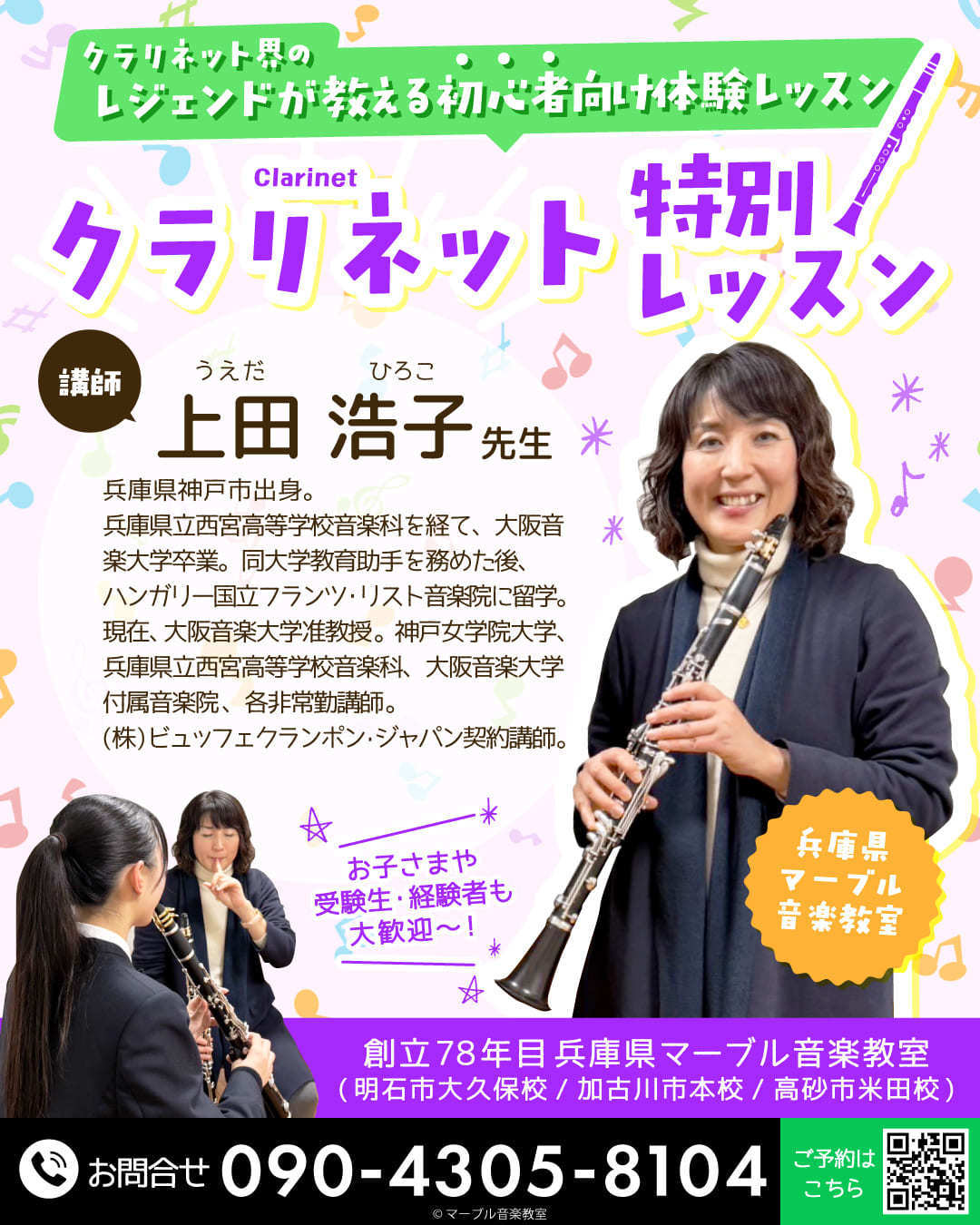 初心者の方はもちろん「もう一度クラリネットを楽しみたい」という経験者の方にもお勧めです。