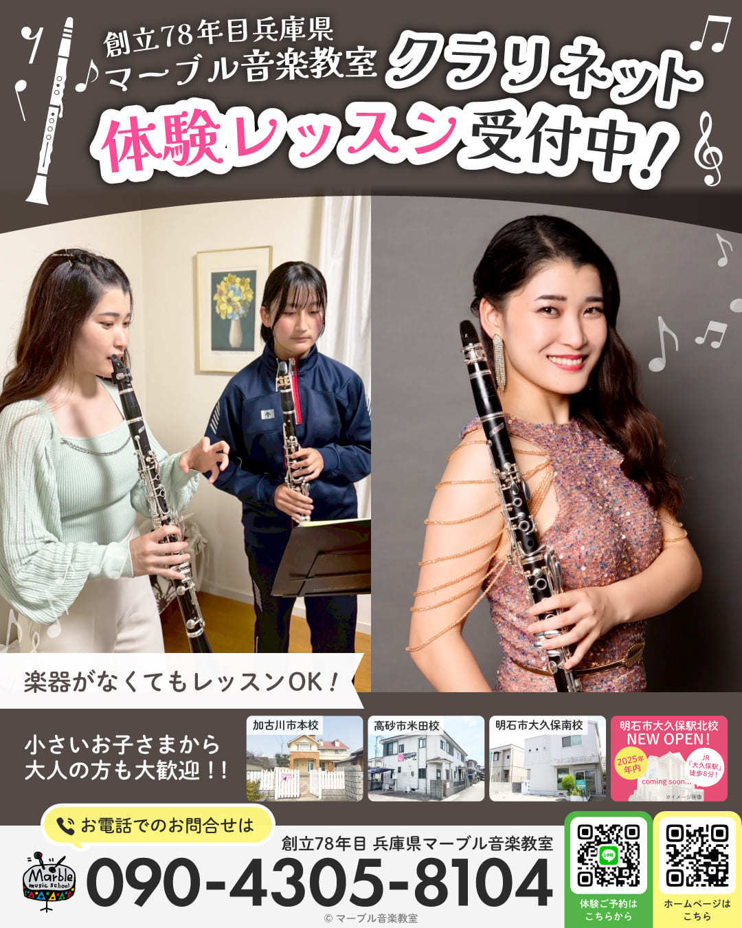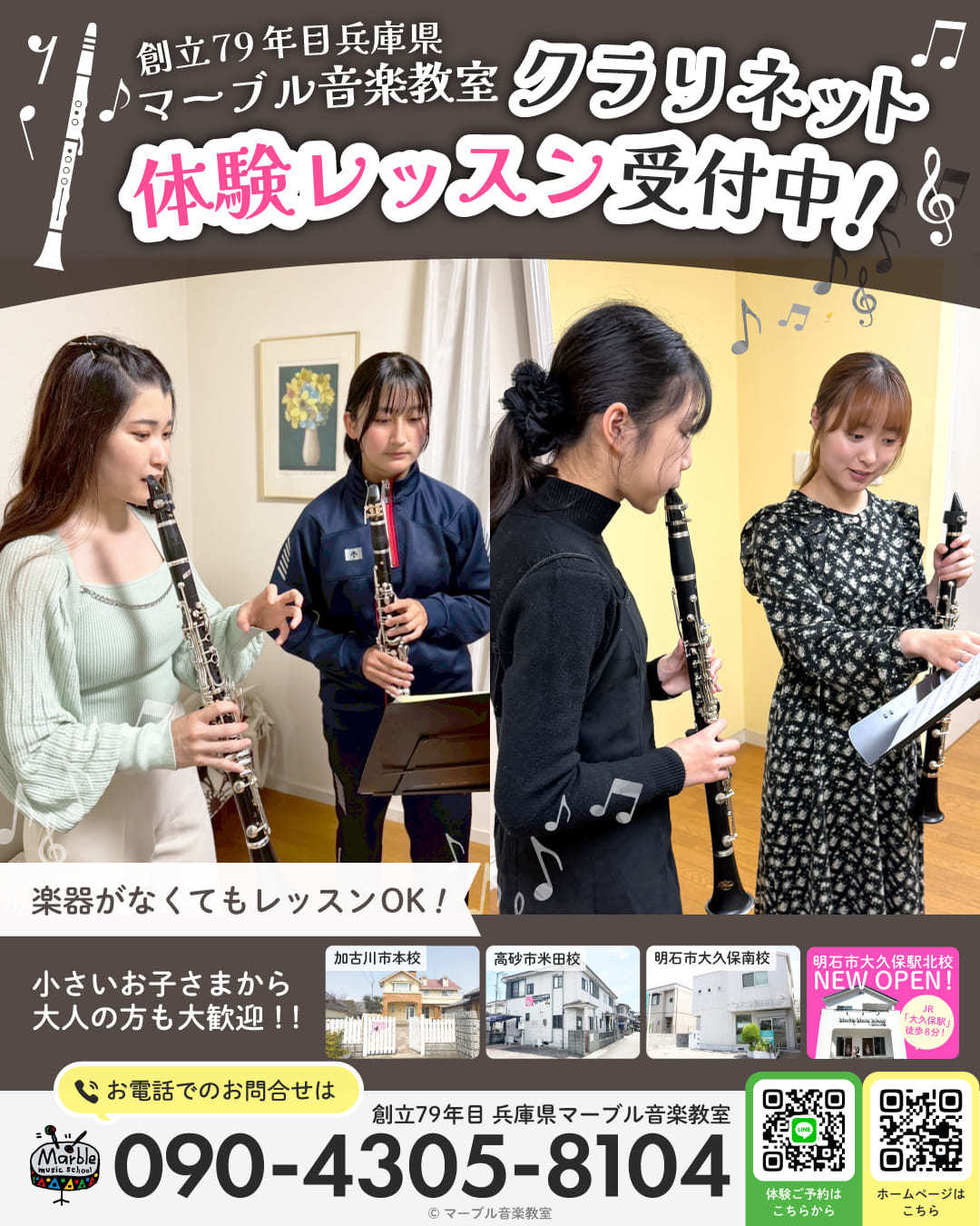 加古川市明石市のマーブル音楽教室クラリネット講師の滉一朗先生をご紹介◎