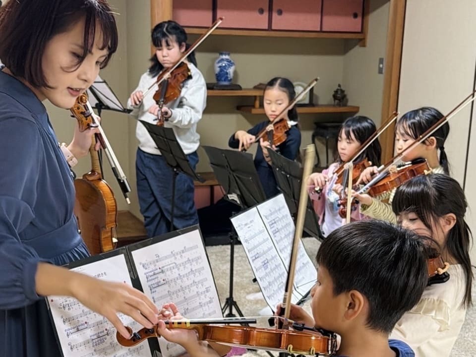 レッスンは、弓の持ち方や左手の運指、譜面の読み方といった基本からスタートし、音色を美しく表現するためのボーイングテクニックや運指のポジションなどを学んでいきます。