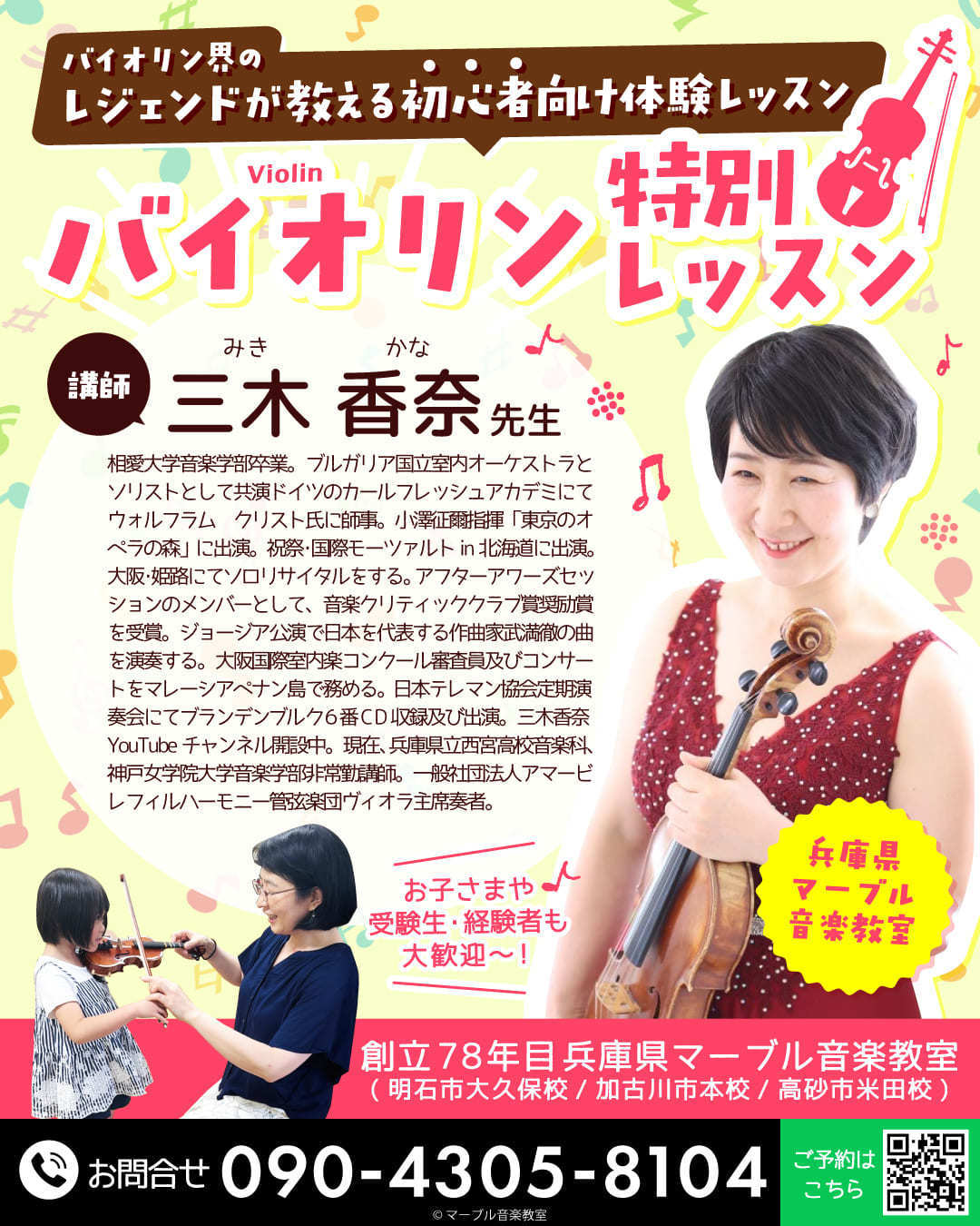 75周年を迎える明石市加古川市のマーブル音楽教室のバイオリンレッスンをご紹介