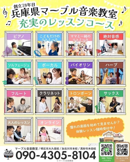 マーブル音楽教室では各教室にて、体験レッスンを行っております。